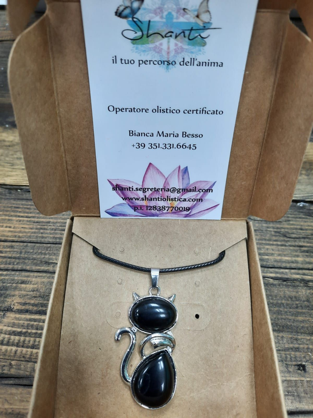 Amuleto donna serie "gattini" tormalina nera
