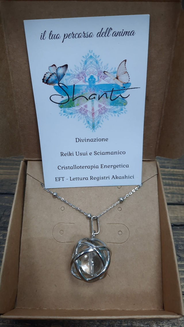 Amuleto donna con ciondolo genesa con cristallo naturale quarzo ialino