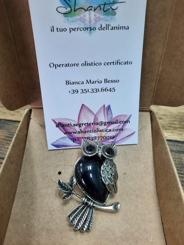 Amuleto donna con ciondolo civetta per la protezione dalle proprie negatività. ossidiana nera