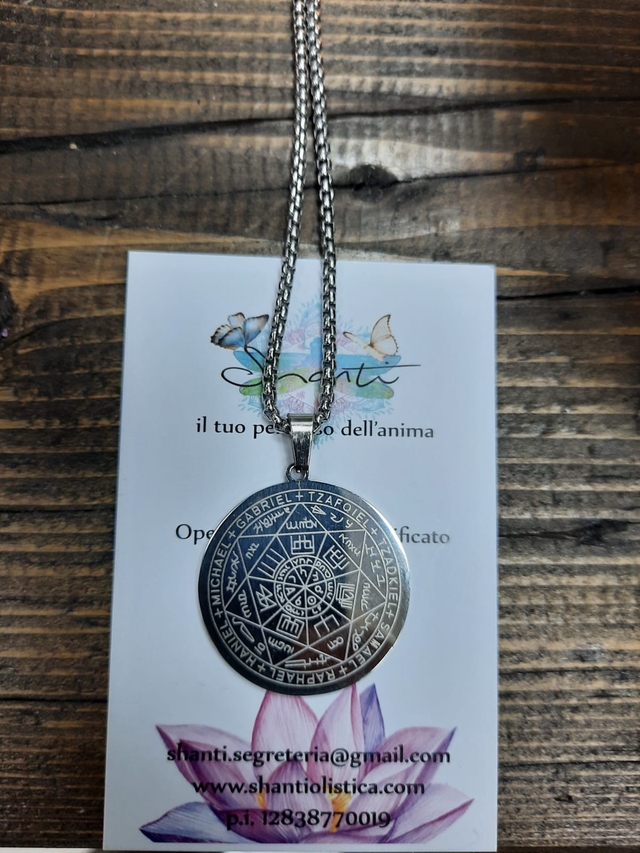 Amuleto geometria sacra con sigillo 7 Arcangeli, catena e ciondolo in acciaio inossidabile