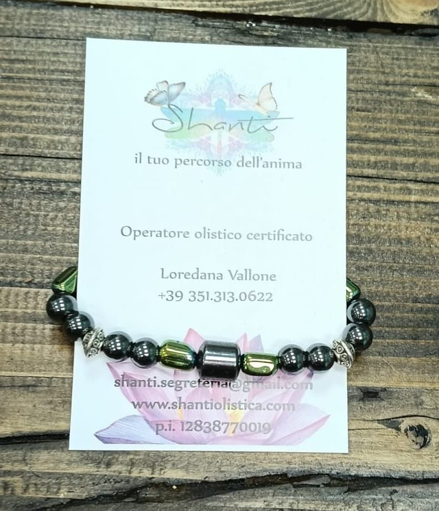 Bracciale donna con ematite, ematite verde e magnetite, per alleviare dolori muscolari e tendinei.