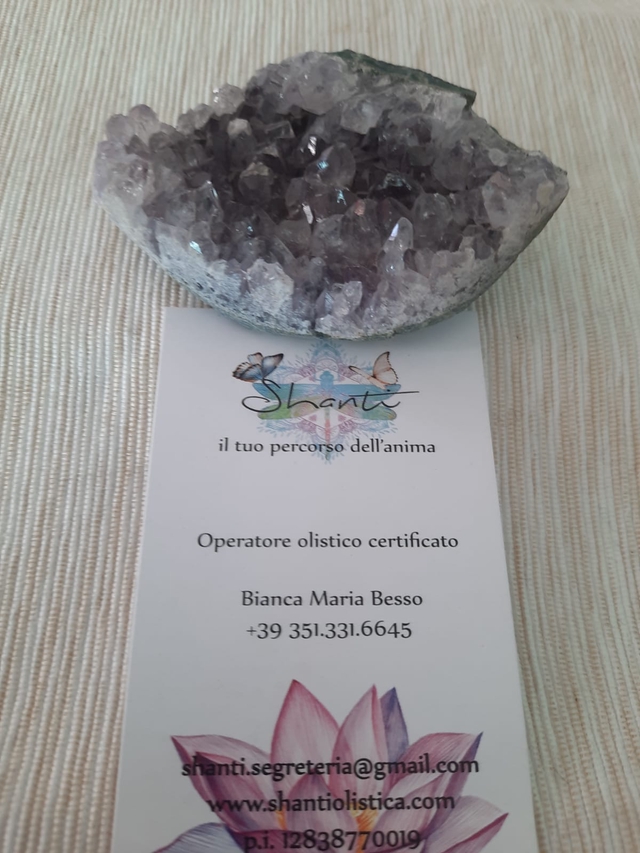 Drusa di ametista media, lunghezza circa 4-5 cm. Adatta per purificare e ricaricare i cristalli che si pongono sopra. Molto utile anche da utilizzare in camera da letto per un sonno sereno.