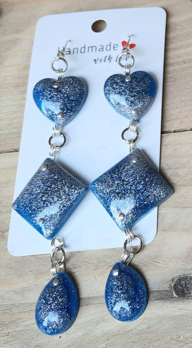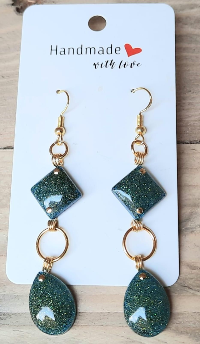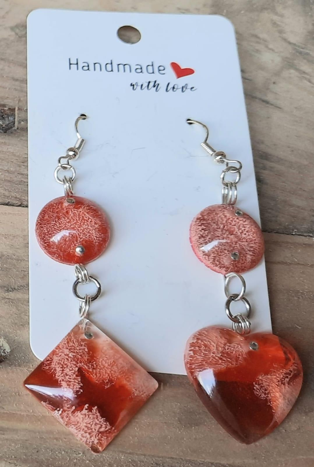 Orecchini in resina epossidica realizzati a mano, colori ad alcol con tecnica petri dish, gancio in acciaio inossidabile.