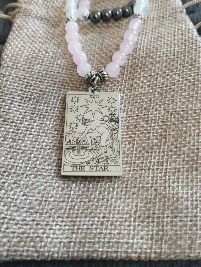Talismano in acciaio inossidabile con ciondolo Arcano di nascita e personalizzazione su canalizzazione del destinatario: mediante la canalizzazione, l'operatore sarà in grado di identificare le necessità energetiche e spirituali individuali e di personalizzare il talismano con i cristalli adatti.